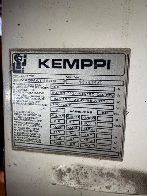1 300 €Käytetty Kemppi Kempact Mig 2520 hitsauskoneTurku, Pohjola-Kastu, Varsinais-Suomi2 pvHaka-Kone OyLisää suosikiksi.