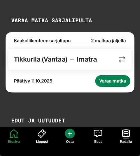 20 €TIKKURILA - IMATRA 2kpl lapsilippua viim.käyttöp La 11.10.2025Helsinki, Suurmetsä, Uusimaa8 tLisää suosikiksi.