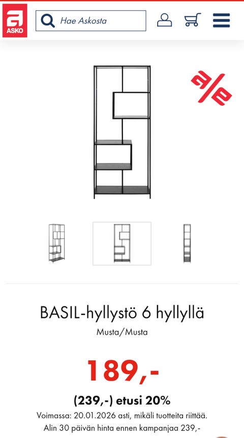 Antiikki ja taide (5)Auto-, vene- ja moottoripyörätarvikkeet (14)Elektroniikka ja kodinkoneet (12)Eläimet ja eläintarvikkeet (2)Koti ja sisustus (1 158)Lapset ja vanhemmat (17)Liiketoiminta ja palvelut (42)Piha ja remontointi (98)Urheilu ja ulkoilu (2)Vaatteet, kosmetiikka ja asusteet (1)Viihde ja harrastukset (32)