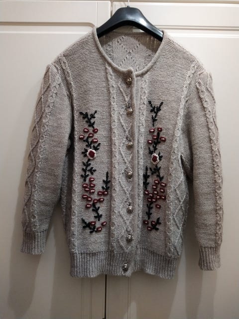 ACNE STUDIOS harmaa helmikoristeinen neuletakki villatakki pellava puuvilla L