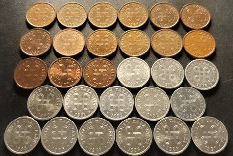 3 €Kolikkoerä 5 penniä 1963-1990, 29 erilaista, Täysi sarjaJoensuu, Joensuu Keskus Pohjoinen, Pohjois-Karjala10 tLisää suosikiksi.
