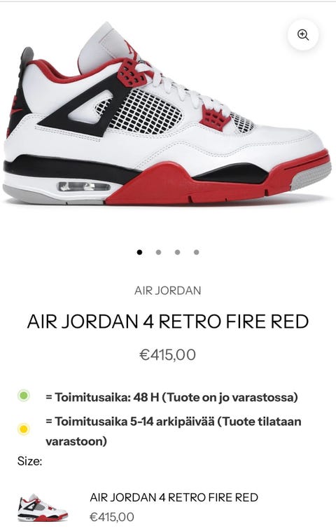 210 €Air Jordan 4 Retro Fire Red Tennarit koko 42Koko 42 Air JordanTurku, Turku Keskus, Varsinais-Suomi4 tLisää suosikiksi.
