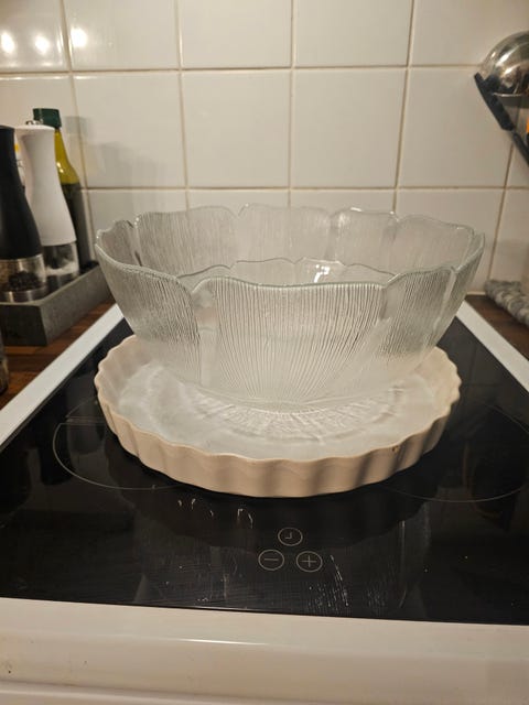Piirakkavuoka ja lasi astiat