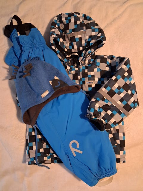 Talvella pienten lasten läheisillä voi ollakin kuumat oltavat, ainakin eteisessä pukiessa: hikipisarat tippuvat otsalta, kun lapselle pitää pukea villahaalari, villasukat, kintaat, pipo tai myssy ja lopulta vielä ulkovaatteet ja talvisaappaat. Ulkovaatteista toppahaalari on usein nopeampi pukea kuin erillinen toppatakki ja -housut, eikä lumi mene helposti sisälle. Myynti-ilmoituksesta kannattaa katsoa talvihaalarin tai muun ulkovaatteen kunto ja esimerkiksi se, miten hyvin hihansuut ja lahkeet saa kiristettyä, onko vaatteessa monta heijastinta ja onko se vedenpitävä.