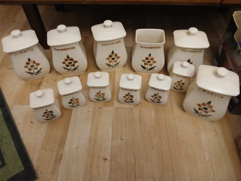 Torista voit löytää sekä tavallisia säilytysastioita että uniikkeja, vanhoja purkkeja, sirottimia ja pulloja keittiöösi!