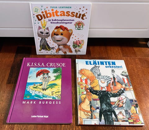 MyydäänSatukirja 3x Dibitassut + Kissa Crusoe + Eläinten orkesteriVantaa, Kirkonkylä-Veromäki, Uusimaa4 pvLisää suosikiksi.