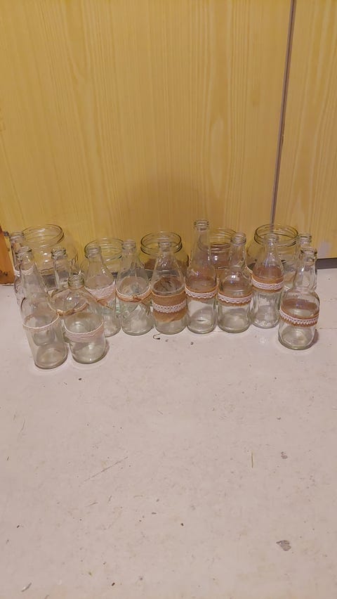 10 €Hääkoristeet koristeltuja lasipurkkeja ja -pullojaSeinäjoki, Hyllykallio, Etelä-Pohjanmaa26.1.Lisää suosikiksi.