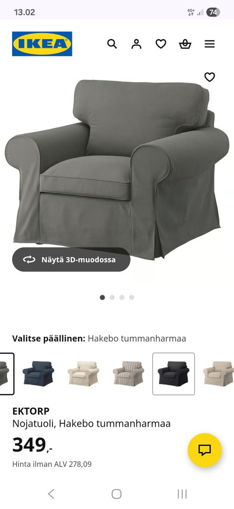 600 €Ikea söderhamn 4-istuttava sohva divaanilla IKEAHelsinki, Kalasatama, Uusimaa2 pvLisää suosikiksi.