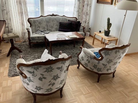 280 €Myydään: Retro-sohvakalusto – sohva + 2 nojatuolia (vakosametti)Turku, Martti-Korppolaismäki, Varsinais-Suomi7 pvLisää suosikiksi.