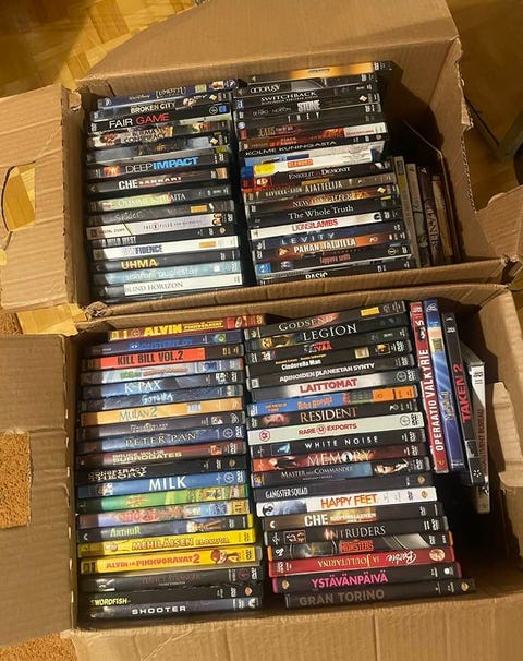 50 €Kaksi muuttolaatikollista dvd-elokuvia (noin 270 kpl)Kerava, Kerava Keskus, Uusimaa3 tLisää suosikiksi.