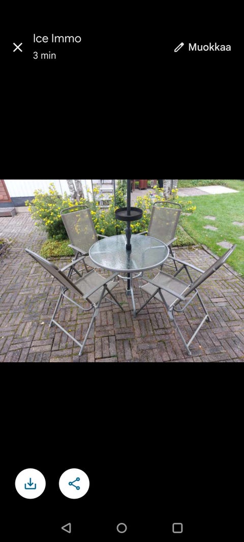 10 €Muovinen pyöreä puutarhapöytä ja neljä muovituolia valkoinenLiperi, Viinijärvi, Pohjois-Karjala26.9.Lisää suosikiksi.