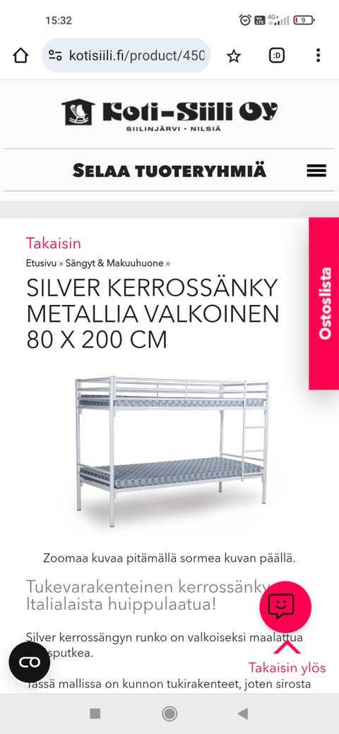 Antiikki ja taide (42)Auto-, vene- ja moottoripyörätarvikkeet (57)Elektroniikka ja kodinkoneet (61)Eläimet ja eläintarvikkeet (43)Koti ja sisustus (1 315)Lapset ja vanhemmat (513)Liiketoiminta ja palvelut (16)Piha ja remontointi (294)Urheilu ja ulkoilu (107)Vaatteet, kosmetiikka ja asusteet (1 061)Viihde ja harrastukset (349)