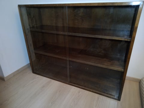 Kirjahylly ja lasivitriini