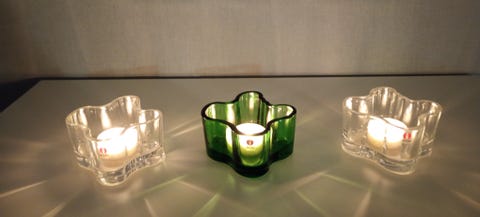 Hanki useampi erilainen, mutta samantyylinen kynttilänjalka ja tee niistä kollaasi juhlapöytään