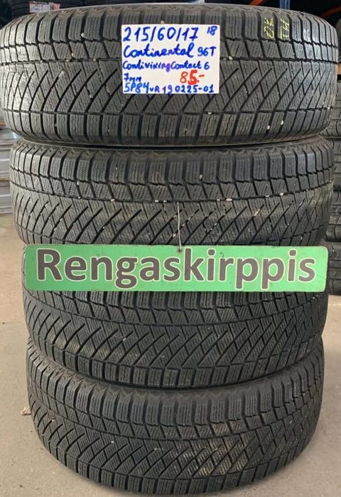 340 €215/60R17 Continental ContiVikingContact 6 96T kitka 7mm DOT18 4KPLVantaa, Petikko, Uusimaa16.12.Rengaskirppis VantaaLisää suosikiksi.