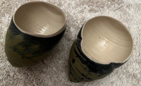 Kaksi lasimaljakkoa