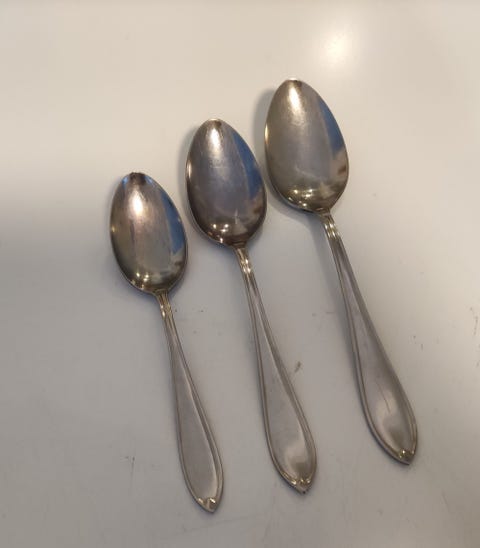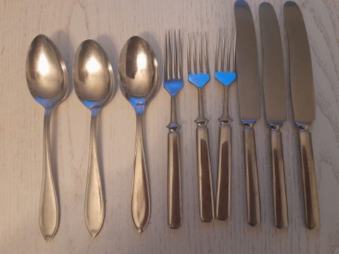 Jos hankit aterimia ja pöytähopeita käytettynä, muistathan että niitä kannattaa kiillottaa säännöllisesti. Netistä löydät runsaasti vinkkejä esimerkiksi hopean puhdistukseen. Toki vanhassa esineessä saa monen mielestä myös näkyä jonkin verran ajan patinaa. Myös oikea säilyttäminen auttaa pitämään vanhat hopeat kiiltävinä: pöytähopeat kannattaa säilyttää joko alkuperäisissä laatikoissa tai esimerkiksi puuvilla- tai minigrip-pusseissa, mieluiten valolta suojattuna.