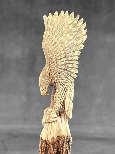 89 €Kaiverrus, Stunning Eagle carving from deer antler on a custom stand - 17 cm -Helsinki, Keskusta - Etu-Töölö, Uusimaa16 tCatawikiLisää suosikiksi.