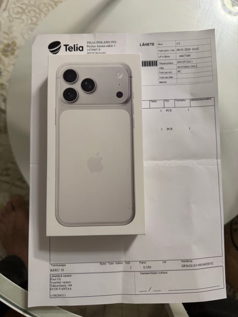 1 299 €Avamaton IPhone 17 Pro Max 256 Silver 256 GB AppleHelsinki, Etelä-Laajasalo, Uusimaa20.1.Lisää suosikiksi.