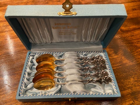 Jos hankit aterimia ja pöytähopeita käytettynä, muistathan että niitä kannattaa kiillottaa säännöllisesti. Netistä löydät runsaasti vinkkejä esimerkiksi hopean puhdistukseen. Toki vanhassa esineessä saa monen mielestä myös näkyä jonkin verran ajan patinaa. Myös oikea säilyttäminen auttaa pitämään vanhat hopeat kiiltävinä: pöytähopeat kannattaa säilyttää joko alkuperäisissä laatikoissa tai esimerkiksi puuvilla- tai minigrip-pusseissa, mieluiten valolta suojattuna.