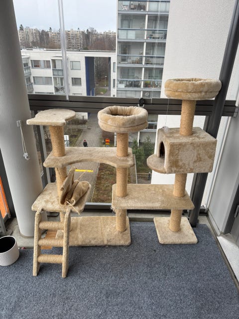 Kissanpedit, vessat, kiipeilypuut ja raapimatolpat sekä muut tavarat kissoille voi hyvin ostaa käytettynä. Torissa on 2 501 ilmoitusta, joissa myydään ja ostetaan kissatarvikkeita.