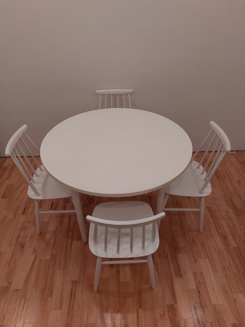 320 €Vintagea: valkoinen pienehkö pyöreä ruokapöytä ja pinnatuolit, Vantaa/kuljetusVantaa, Rekola, Uusimaa15 minLisää suosikiksi.