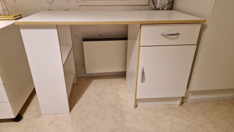 Työpöytä ja hyllykkö