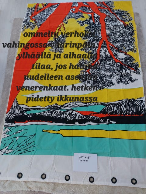 75 €MARIMEKKO Fujiwo Ishimoton 1977 suunnittelema ”Suvi”-verho MarimekkoIitti, Hiisiö, Päijät-Häme16.11.Lisää suosikiksi.