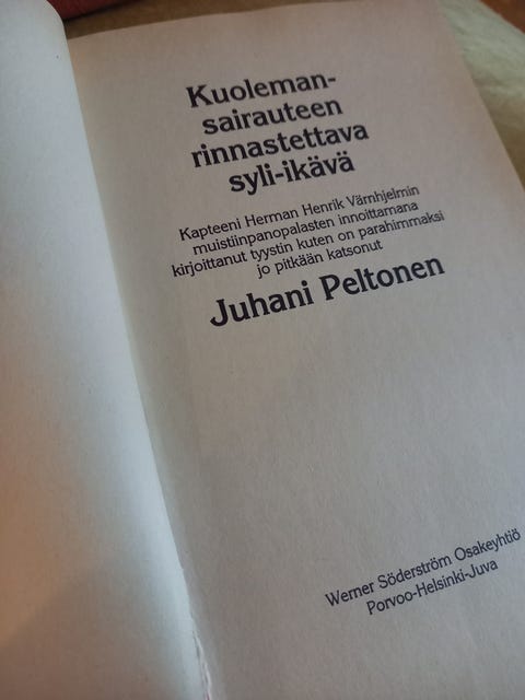 7 €J. Peltonen Kuolemansairauteen rinnastettava syli-ikäväTuusula, Hyrylä, Uusimaa29.11.Lisää suosikiksi.