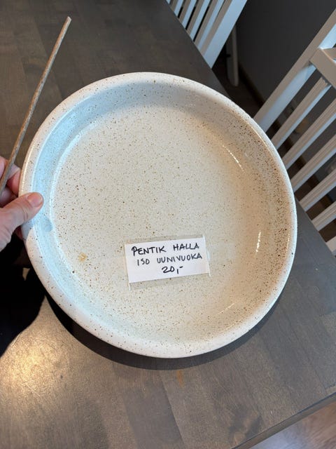 100 €Pentik Niittykukka piirakkavuoka & 10kpl mukejaLahti, Laune-Nikkilä, Päijät-Häme18.11.2025Lisää suosikiksi.