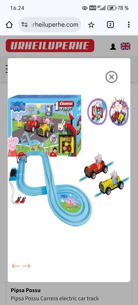 10 €Pipsa possu sähköinen autorataOrimattila, Orimattila Keskus, Päijät-Häme17.11.Osta hetiLiikkeessä oleva kuorma-autoToriDiiliLisää suosikiksi.