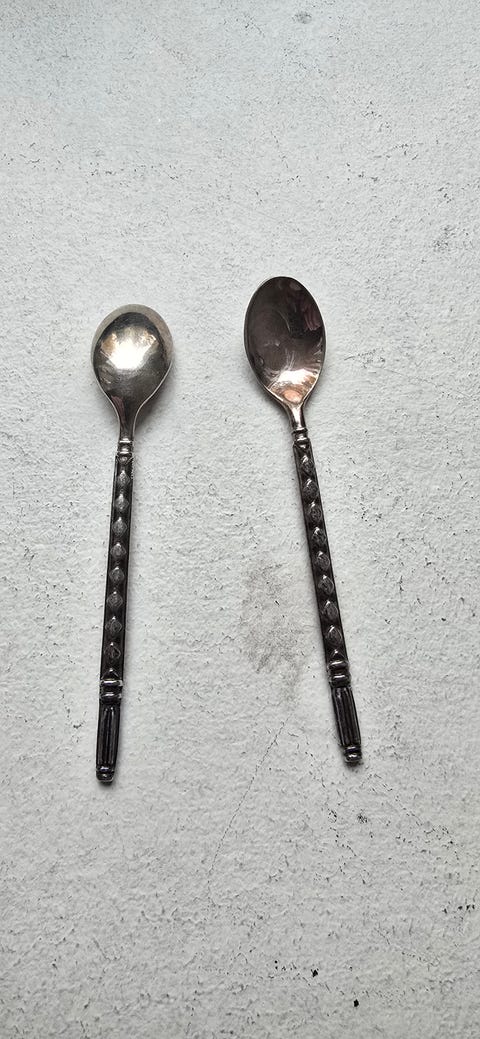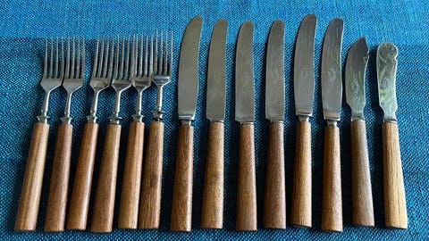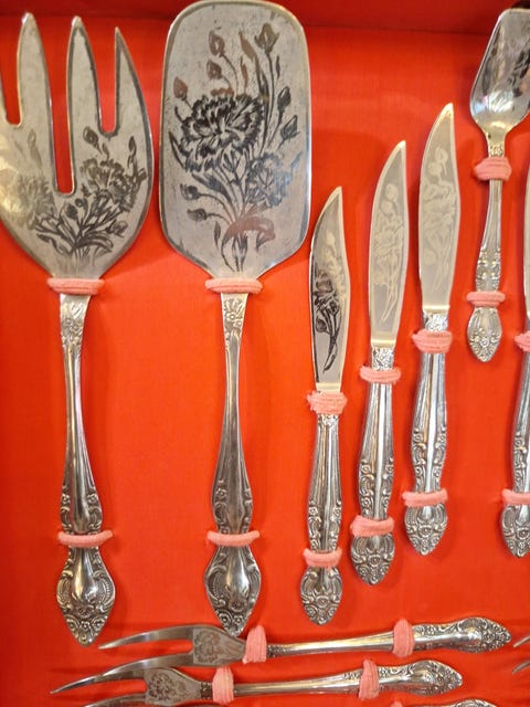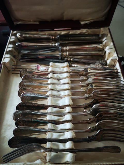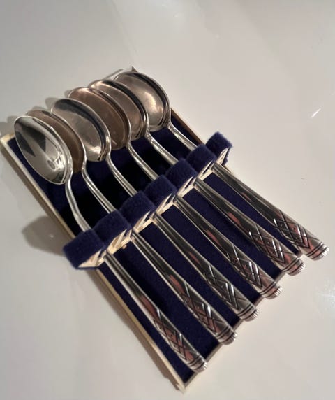 Jos hankit aterimia ja pöytähopeita käytettynä, muistathan että niitä kannattaa kiillottaa säännöllisesti. Netistä löydät runsaasti vinkkejä esimerkiksi hopean puhdistukseen. Toki vanhassa esineessä saa monen mielestä myös näkyä jonkin verran ajan patinaa. Myös oikea säilyttäminen auttaa pitämään vanhat hopeat kiiltävinä: pöytähopeat kannattaa säilyttää joko alkuperäisissä laatikoissa tai esimerkiksi puuvilla- tai minigrip-pusseissa, mieluiten valolta suojattuna.