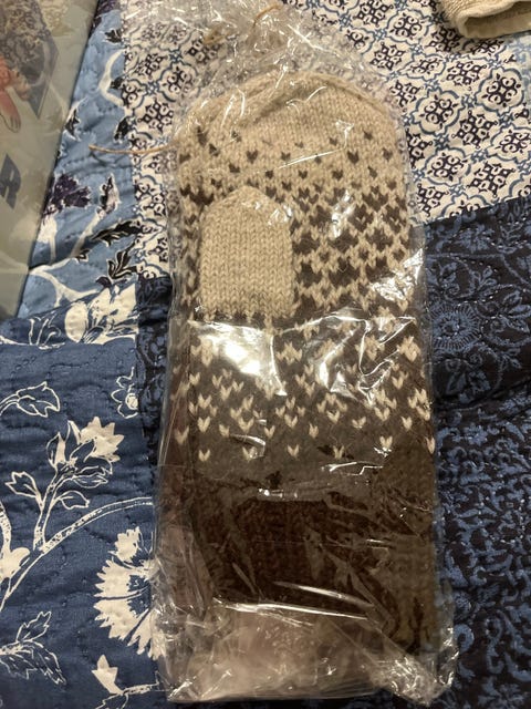Hatun, kaulahuivin ja käsineet voit ostaa myös käytettynä