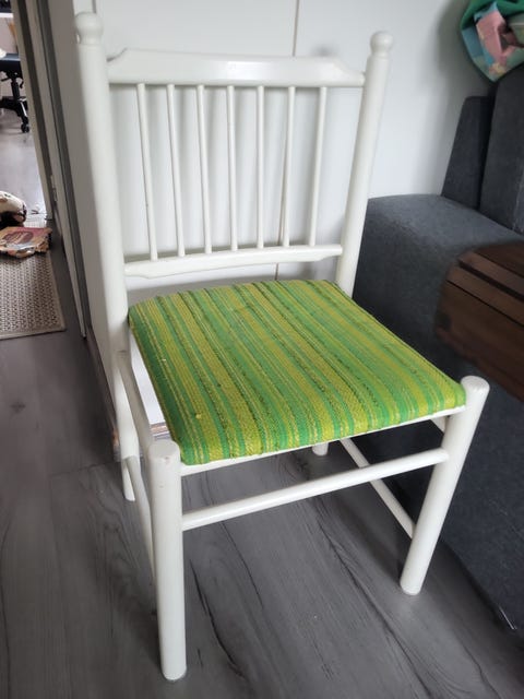 AnnetaanValkoinen puinen tuoli vihreällä istuimellaLempäälä, Höytämö, Pirkanmaa10.3.Lisää suosikiksi.