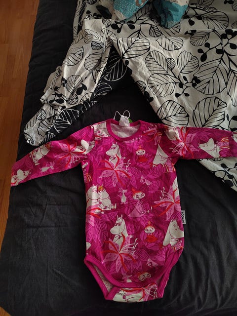 Vauvan body likaantuu usein, ja vaatekaappiin kannattaa ostaa iso varasto