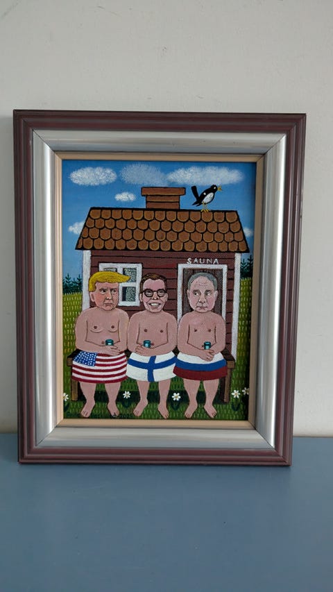180 €Anita Backlund - Saunassa Ongelmat Ratkeaa (Signeerattu Öljyvärimaalaus 2025)Tampere, Koivistonkylä, Pirkanmaa4.12.2025Historian helmetLisää suosikiksi.