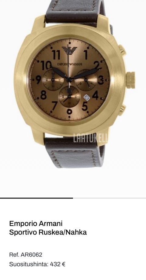 130 €Armani AR-5925 Miesten rannekello ruskea nahkaranneke ArmaniHelsinki, Etelä-Laajasalo, Uusimaa20.10.Lisää suosikiksi.