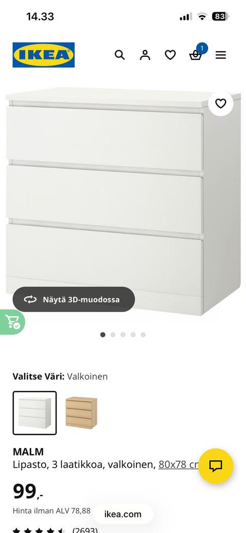Ostetaan ikea malm lipasto