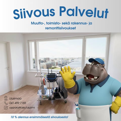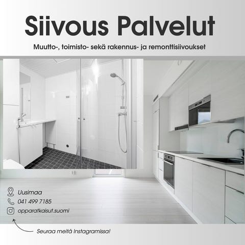 20 €Siivouspalvelut Oppa RatkaisutVantaa, Kaivoksela, Uusimaa28.12.2025Oppa RatkaisutLisää suosikiksi.