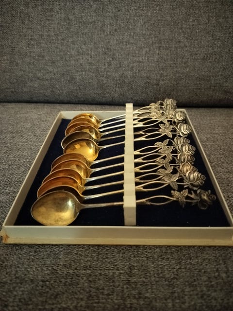 Jos hankit aterimia ja pöytähopeita käytettynä, muistathan että niitä kannattaa kiillottaa säännöllisesti. Netistä löydät runsaasti vinkkejä esimerkiksi hopean puhdistukseen. Toki vanhassa esineessä saa monen mielestä myös näkyä jonkin verran ajan patinaa. Myös oikea säilyttäminen auttaa pitämään vanhat hopeat kiiltävinä: pöytähopeat kannattaa säilyttää joko alkuperäisissä laatikoissa tai esimerkiksi puuvilla- tai minigrip-pusseissa, mieluiten valolta suojattuna.