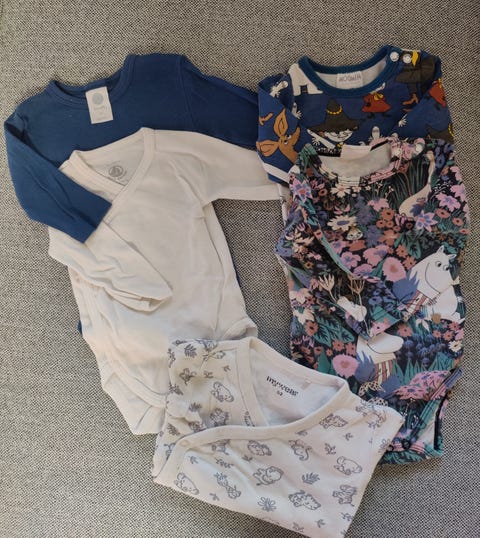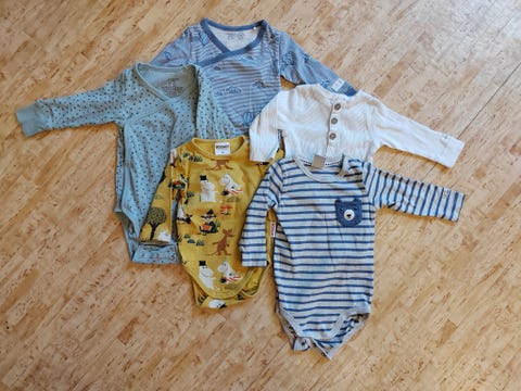 Vauvan body on usein esimerkiksi tavallista puseroa helpompi vaate arjessa, sillä haaroissa olevan nepparikiinnityksen ansiosta vaipanvaihto ja pepun peseminen sujuvat helpommin. Kannattaa myös kokeilla nepparikikkaa: Bodyn haaranepparit voi kiinnittää vastakappaleen avulla ylös vauvan olkapäälle kun vaipanvaihdon tai pepun pesun ajaksi. Näin body pysyy todennäköisemmin kuivana ja puhtaana vaihto-operaation ajan. Arjen ja pyykkivuorojen helpottamiseksi vauvan bodyja kannattaa olla kotona runsaasti. Näistä ainakin osan voi hyvin hankkia käytettynä vaikkapa Torista.