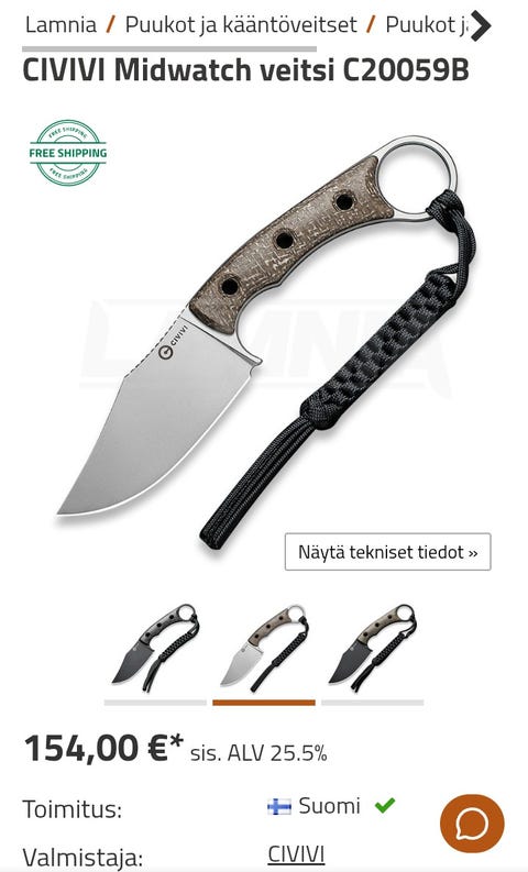 48 €Puukko Pistin Knife Falcon Inox SpainHelsinki, Kruununhaka, Uusimaa5.12.Osta hetiLiikkeessä oleva kuorma-autoToriDiiliLisää suosikiksi.