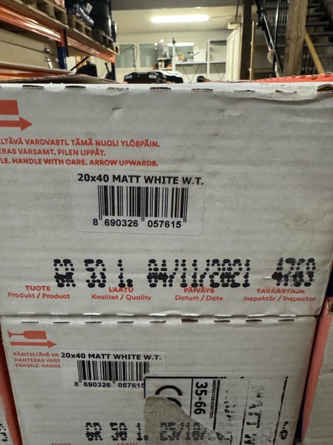 200 €Seinälaatat Matt White 20x40 cm yhteensä noin 32,2m2Helsinki, Tapanila, Uusimaa2.11.Lisää suosikiksi.