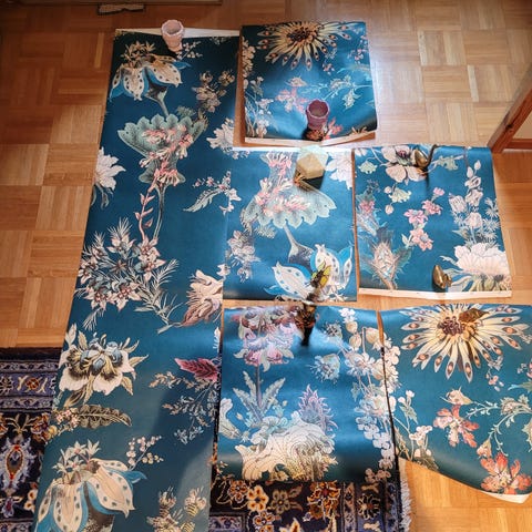 Ylijäänyt tapetti sopii myös huonekalujen päällystykseen, askarteluun ja monen kuosin seinään