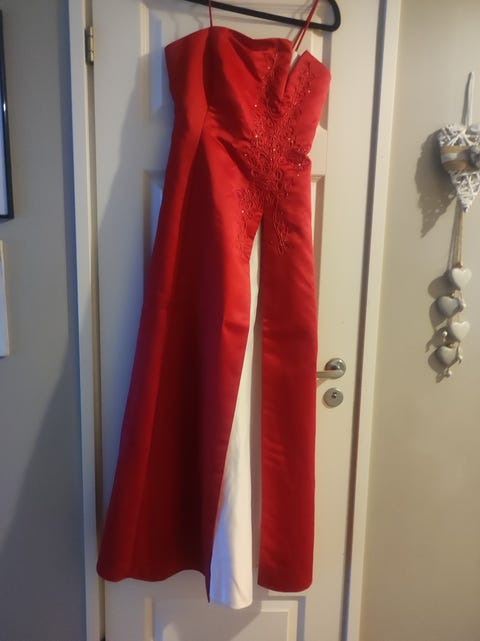 30 €Punavalkoinen pitkä juhlamekko huivilla SKoko SLempäälä, Kuivaspää, Pirkanmaa1 pvLisää suosikiksi.