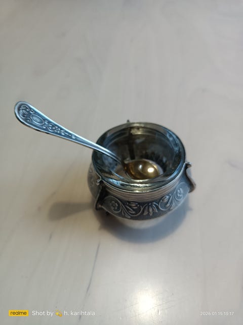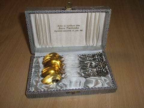 Jos hankit aterimia ja pöytähopeita käytettynä, muistathan että niitä kannattaa kiillottaa säännöllisesti. Netistä löydät runsaasti vinkkejä esimerkiksi hopean puhdistukseen. Toki vanhassa esineessä saa monen mielestä myös näkyä jonkin verran ajan patinaa. Myös oikea säilyttäminen auttaa pitämään vanhat hopeat kiiltävinä: pöytähopeat kannattaa säilyttää joko alkuperäisissä laatikoissa tai esimerkiksi puuvilla- tai minigrip-pusseissa, mieluiten valolta suojattuna.