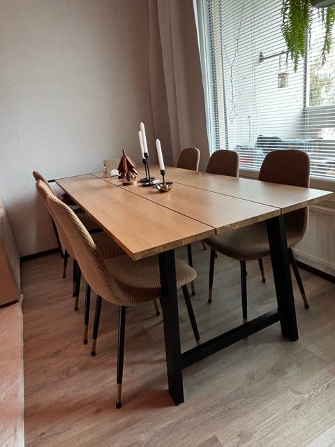 Ruokailuryhmä on usein melko arvokas hankinta ja usein kotona kovassa käytössä. Esimerkiksi taloudessa, jossa on yksi tai useampi pieni lapsi, ruokapöytään ja tuoleihin saattaa tulla naarmuja ja tahroja. Kannattaakin miettiä, voisiko käytetty pöytä olla omaan tarpeeseen riittävä ratkaisu. Ostamalla käytettyjä kodin kalusteita tuet myös kiertotaloutta!