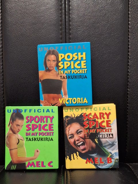 8 €Myydään Spice girls tasku pokkari 8e/kplTyrnävä, Tyrnävä, Pohjois-Pohjanmaa26.11.Lisää suosikiksi.