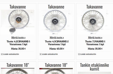 Antiikki ja taide (0)Auto-, vene- ja moottoripyörätarvikkeet (1 162)Elektroniikka ja kodinkoneet (4)Eläimet ja eläintarvikkeet (0)Koti ja sisustus (0)Lapset ja vanhemmat (0)Liiketoiminta ja palvelut (18)Piha ja remontointi (13)Urheilu ja ulkoilu (1)Vaatteet, kosmetiikka ja asusteet (0)Viihde ja harrastukset (3)