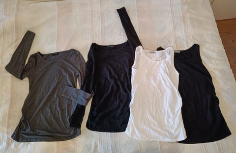 Raskausajan vaatetarpeet voivat yllättää. Vaatteita tarvitaan arkeen, juhlaan, urheiluun ja ulkoiluun - ja alusvaatteet vielä erikseen. Jos raskaus kestää talven yli, voi olla tarpeen hankkia kunnollinen talvitakki. Torista voit löytää käytetyt äitiysvaatteet joka tilanteeseen!